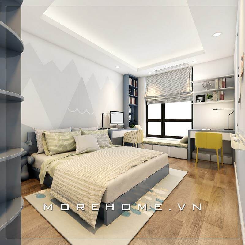 Thiết kế nội thất phòng ngủ trẻ em theo phong cách hiện đại, đơn giản nhưng vẫn đầy đủ tiện nghi.